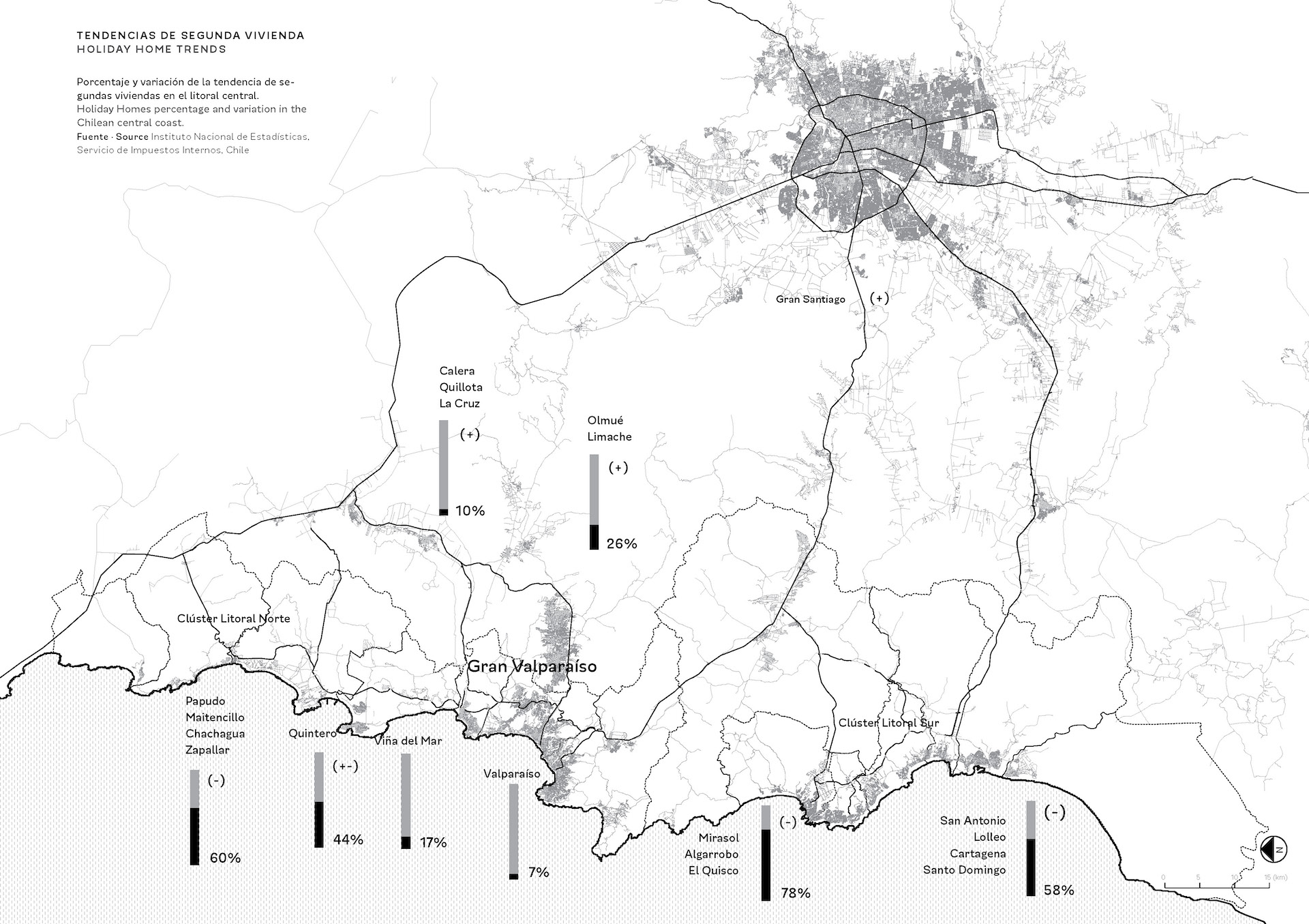 In the last few years, Chile has been experiencing a rapid increase in departures and arrivals of tourists, national and international. In line with global trends, Chile is part of a system of emerging countries, which seek to increase their competitiveness and presence in an international tourism market. This trend translates into an increase in infrastructures for tourism that, although still lacking in many aspects, are rapidly developing. In the Valparaíso region, the so called ‘Central Coast of Chile’, the presence of touristic offer has functioned as a substrate for the growth of real estate investments in second homes, which has further encouraged the development of the area, transforming it into the main sector of coastal tourism throughout the nation. A process of strong real estate speculation along the entire central coast began.